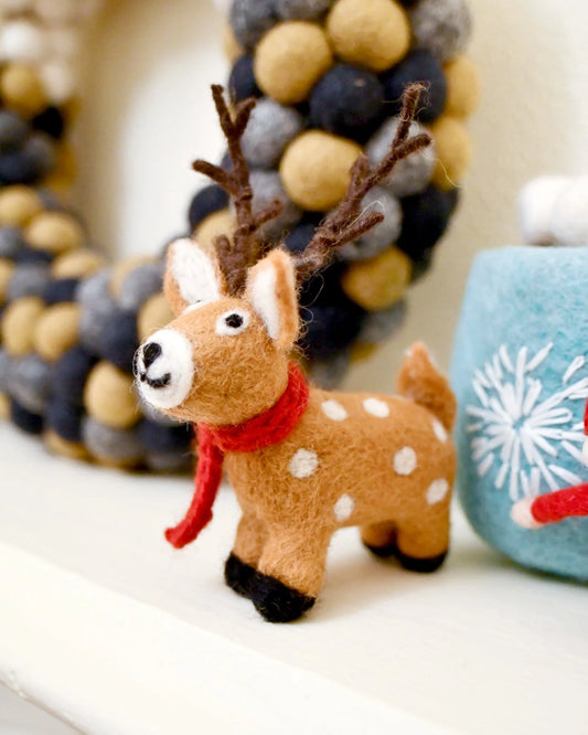 Sold outFelt Reindeer with Red Scarf
