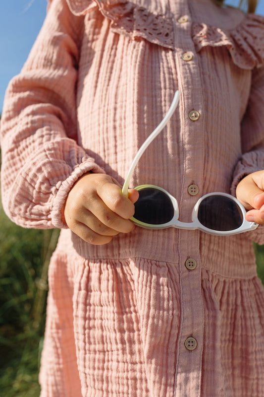 These baby, toddler and kids sunnies feature flexible hinges - yep - no snapped sunglasses arms here!