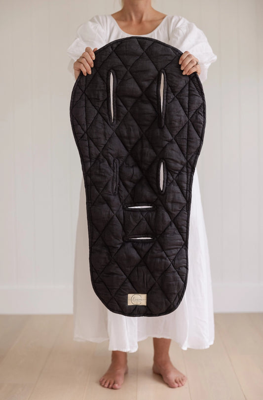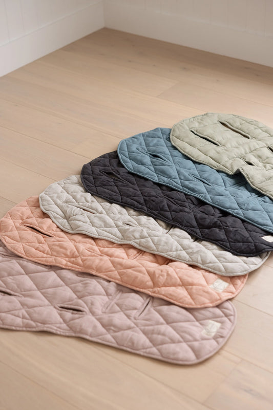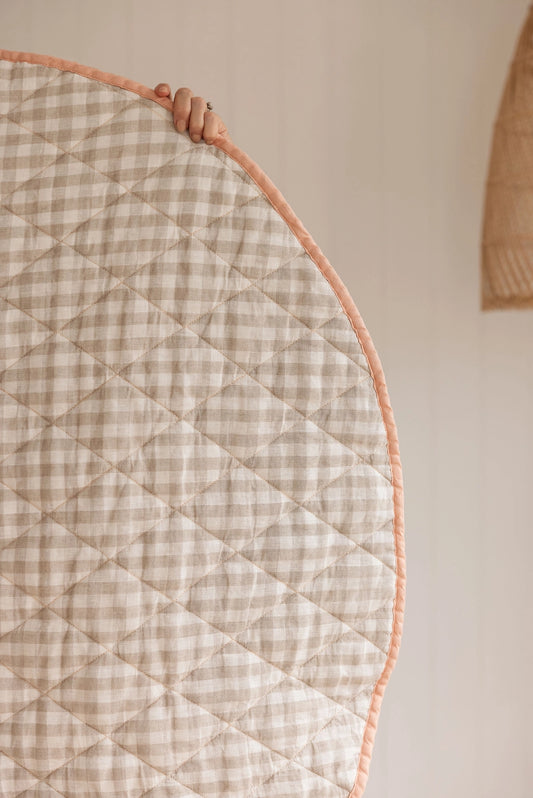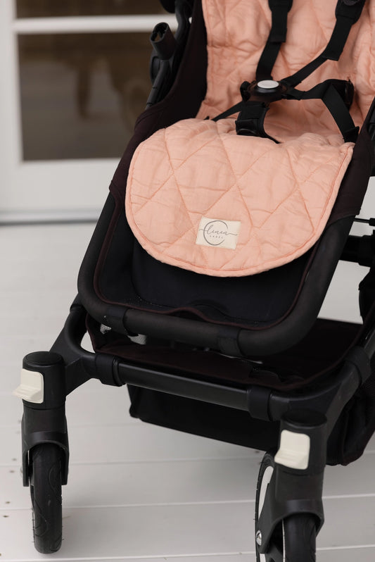 Linen Pram Liner - Dusty Denim Blue and Gingham