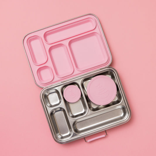 Five Compartment Leakproof Stainless Steel Lunchbox - Pink