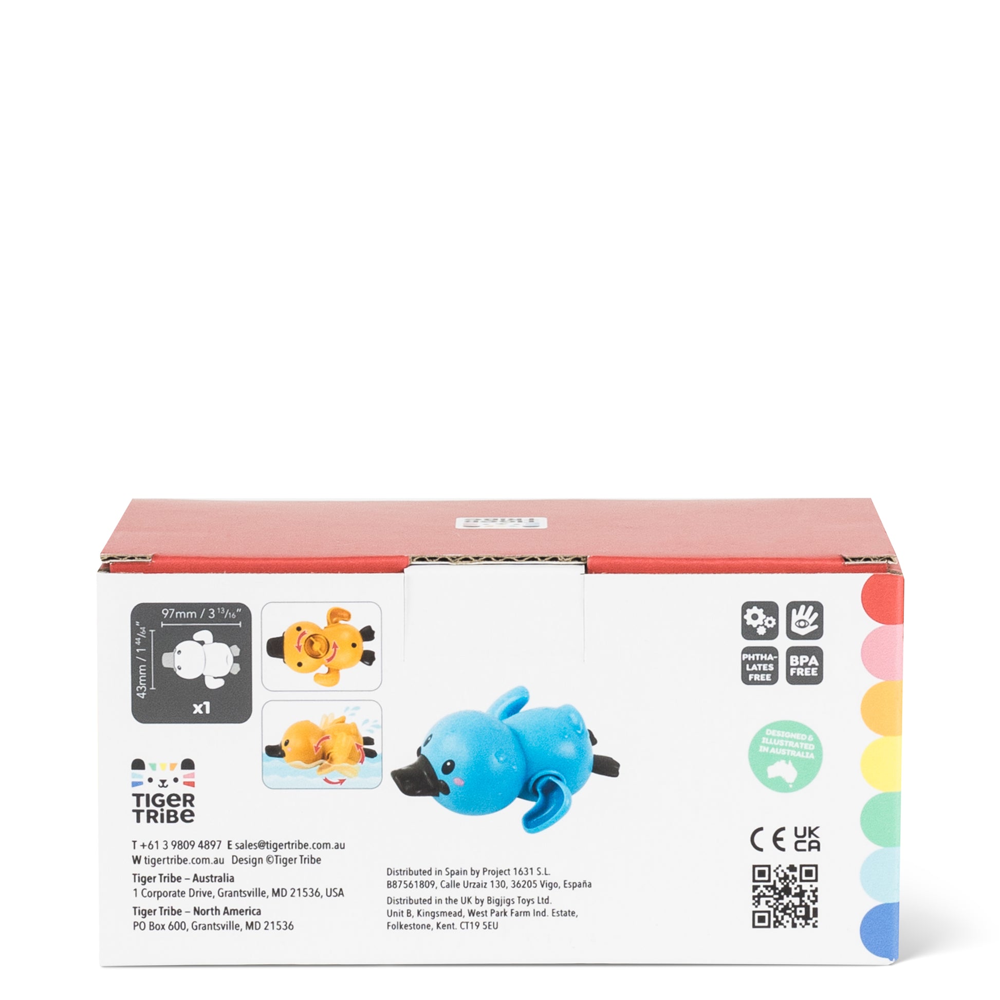 Smooth curves and a compact size make Bath Racers - Platypuses easy to grasp with small hands. The wind-up action helps young kids develop fine motor skills, encourages an understanding of cause and effect, all the while helping to improve hand-eye coordination.