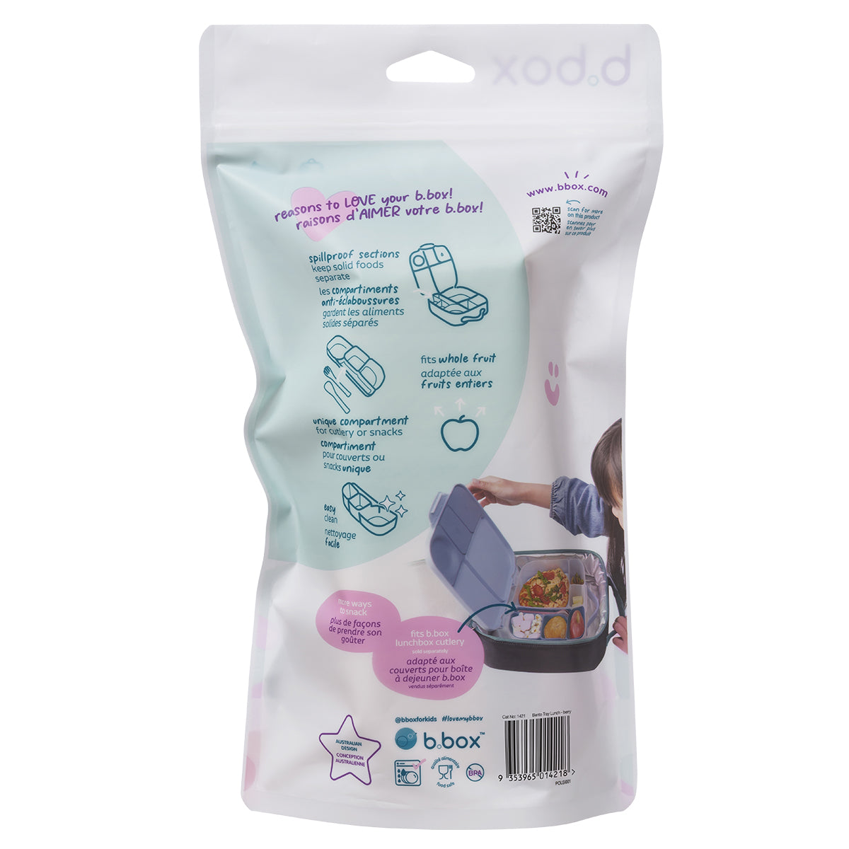 - Bento tray styles feature a handy slot for nesting lunchbox cutlery or snacks and a whole fruit section for apples or pears