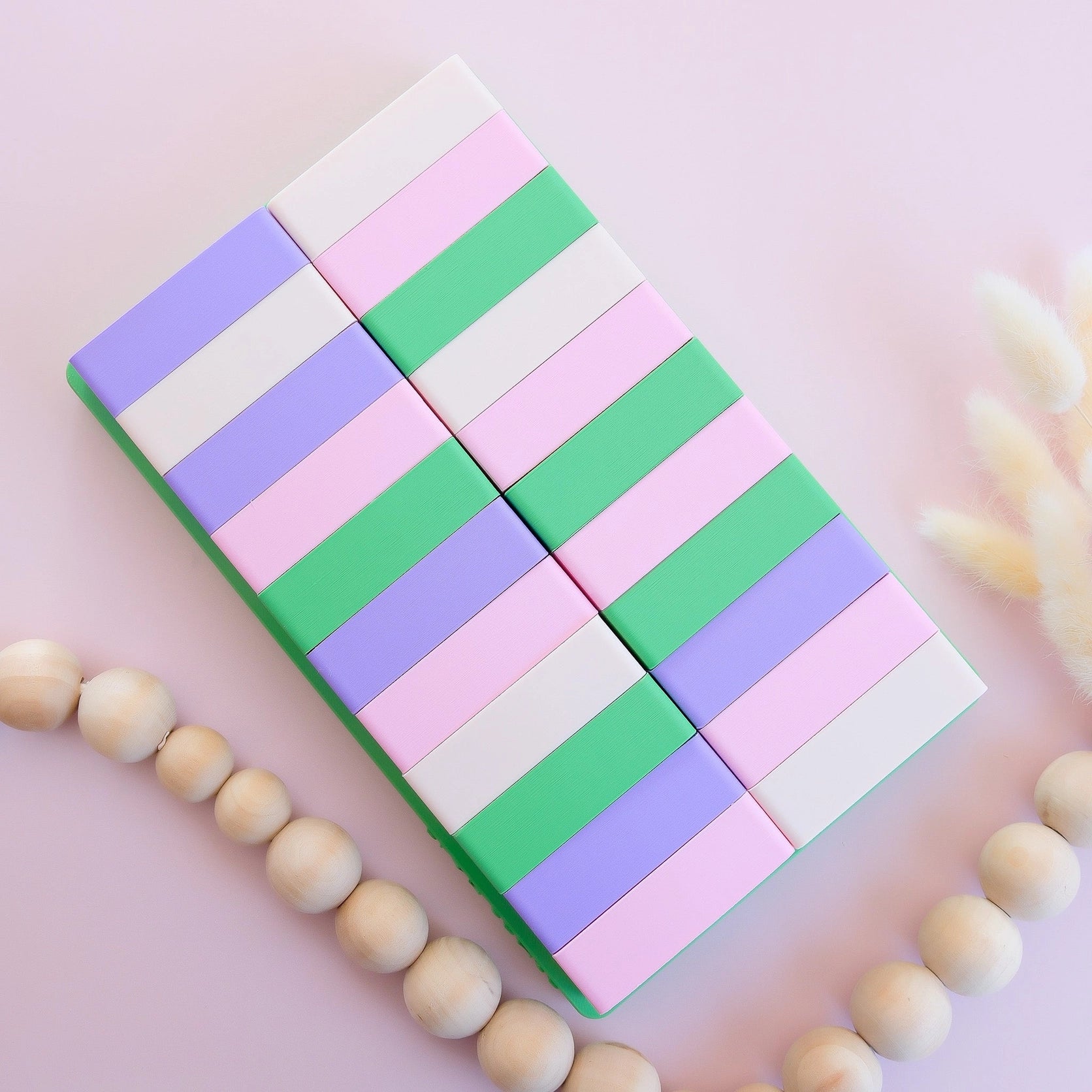 22 bricks in all 4 colours - pink, green, beige and purple.