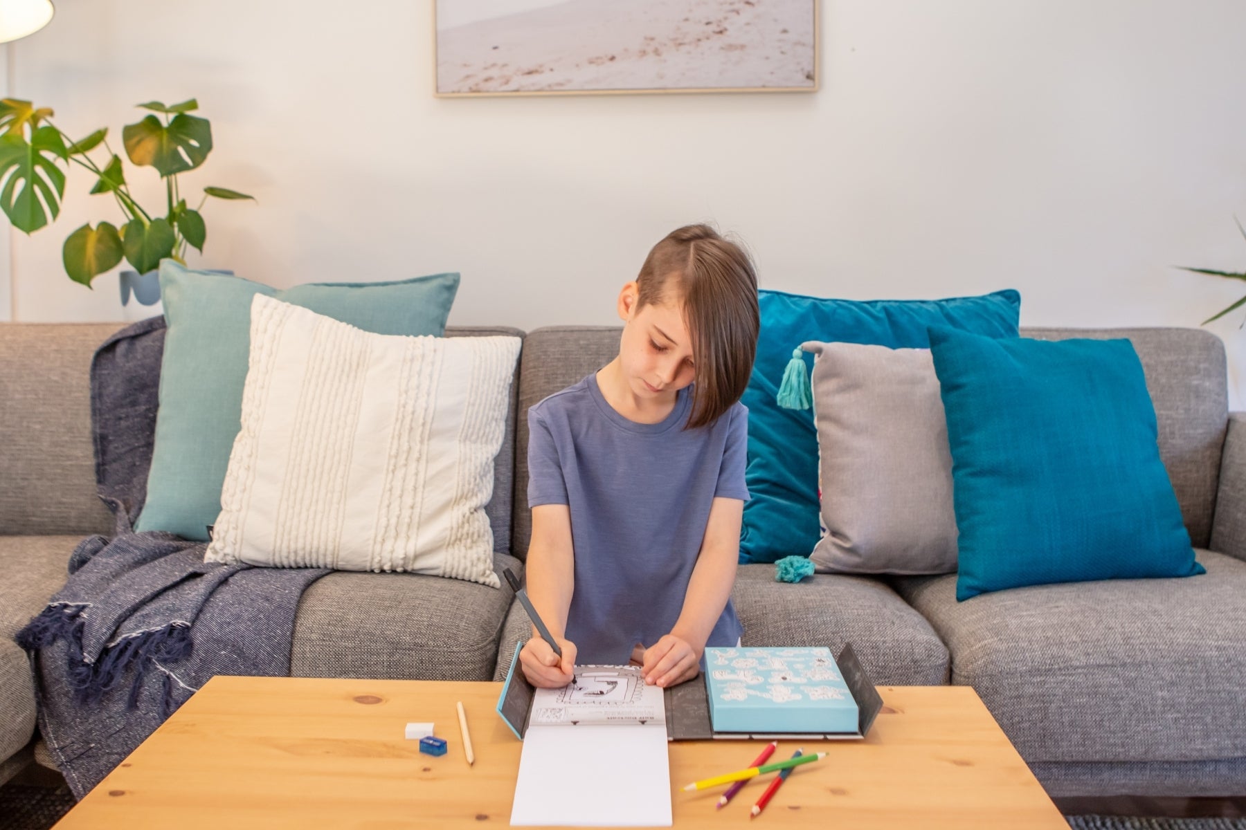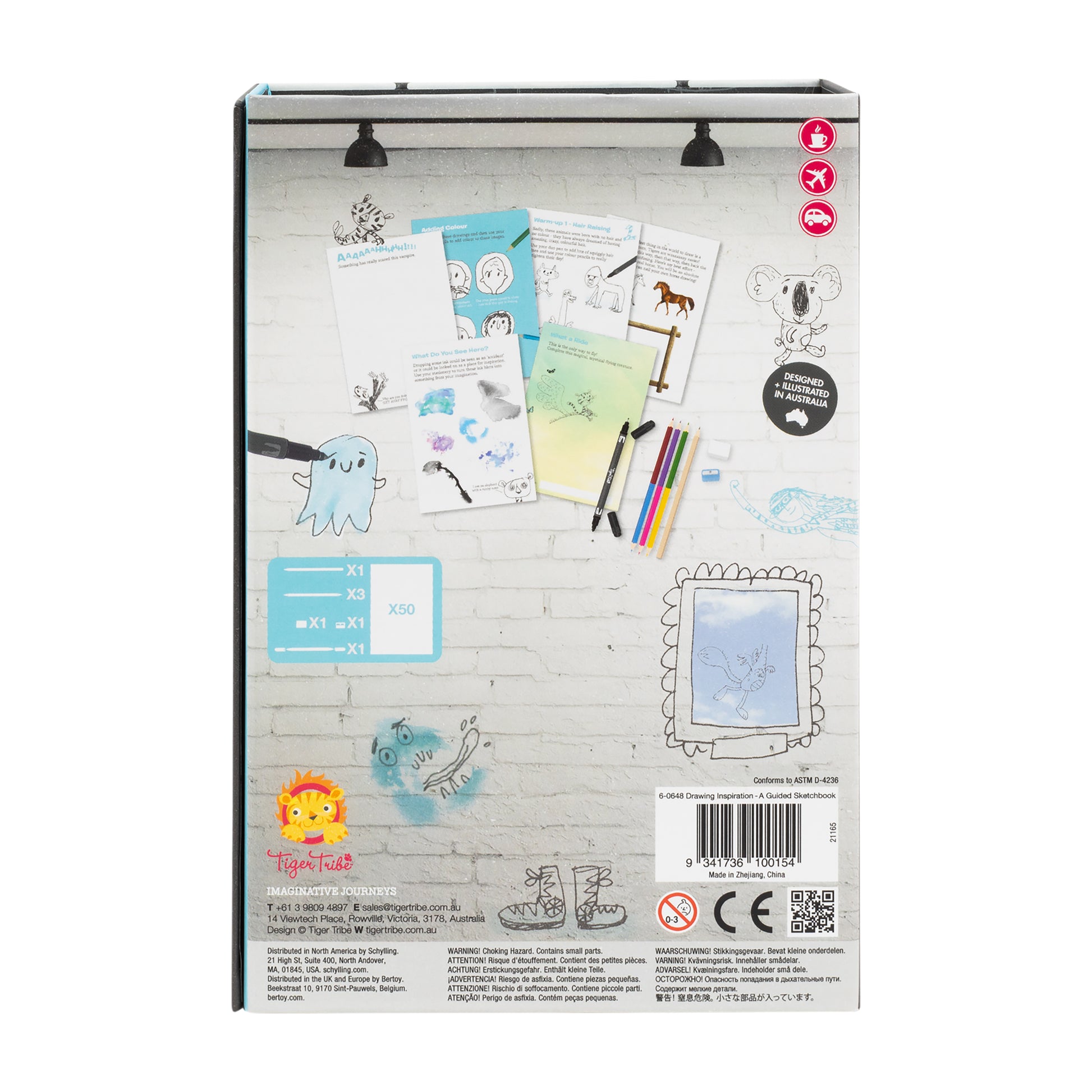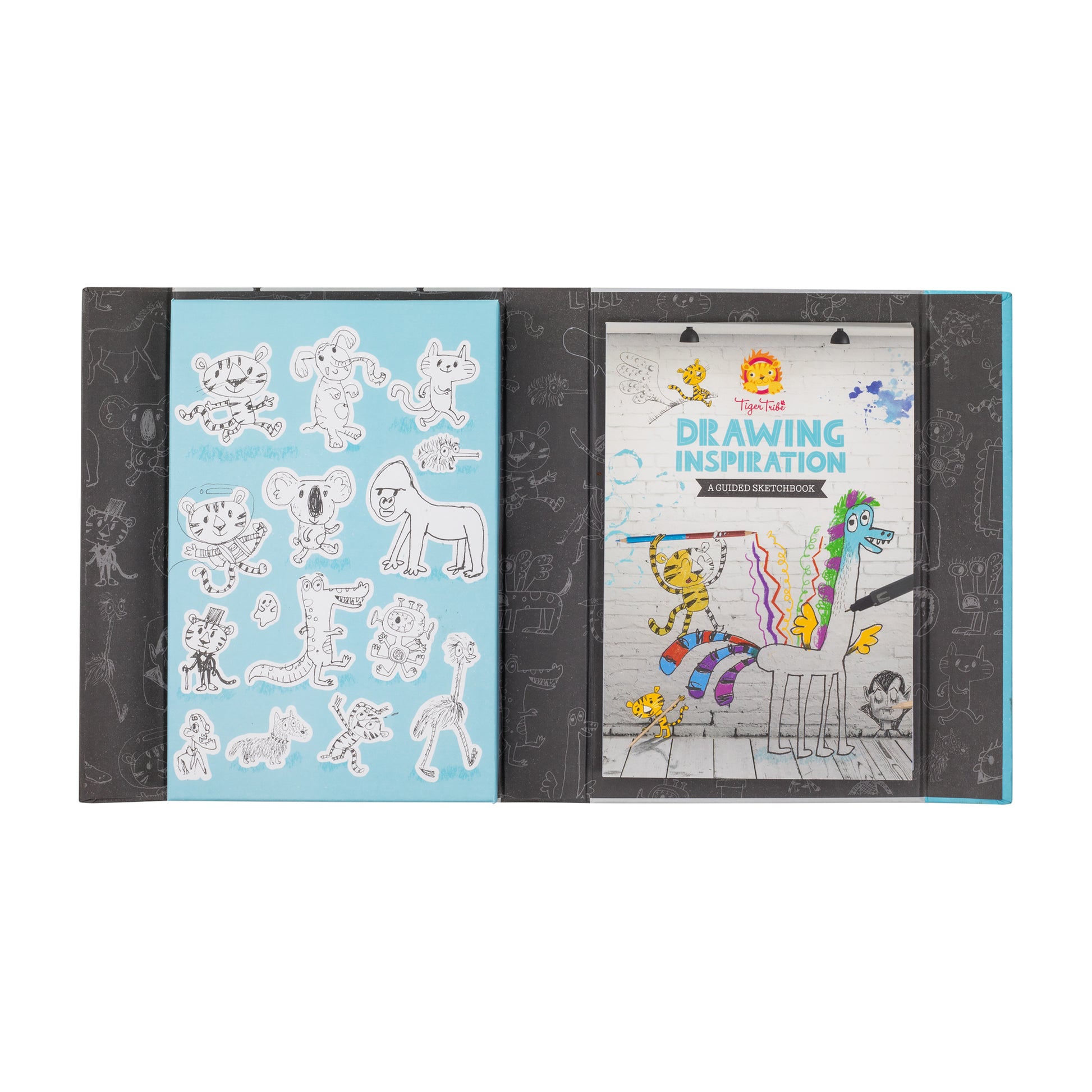Filled with all the art materials required for sketching and a guided sketchbook that comes with a tour guide — a familiar, somewhat ‘scribbly’ Toby the Tiger. Toby cheers kids on as they move through the collection of inspiring prompts and challenges, all designed to get creative juices flowing, pencil grips loosened and to encourage personal style to shine through.