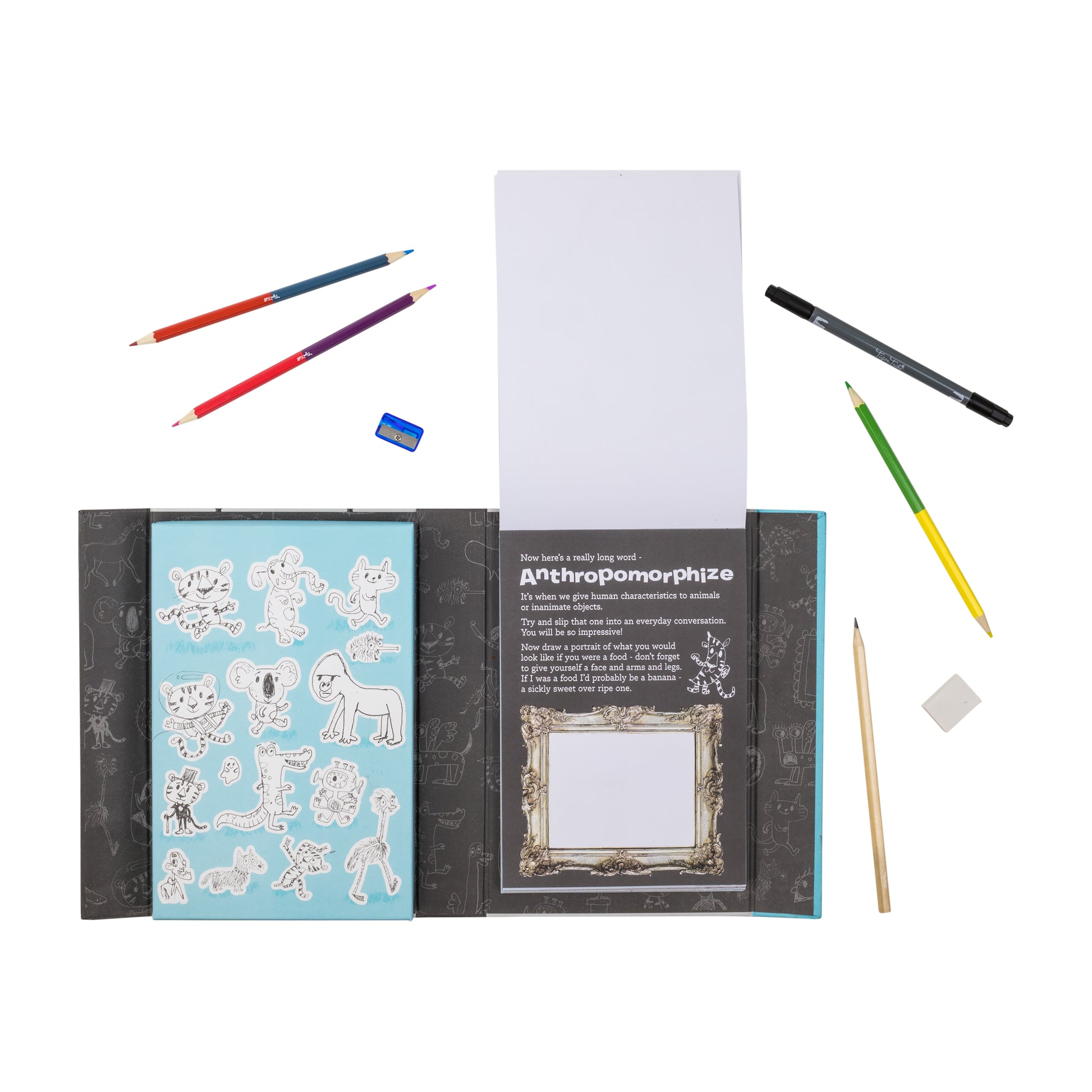 This humorous and engaging kit is designed to help older kids explore their own creativity through sketching. Taking a whimsical, ‘not so serious’ approach to drawing, this kit encourages kids to forget perfect technique and instead focus on expression, imagination, exploration and fun!