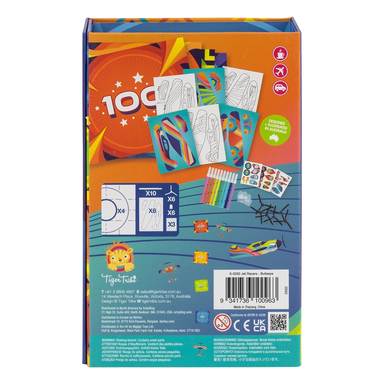 This comprehensive activity set contains pop-out planes primed for decoration with included stickers and vibrant markers. Construct the planes with propellors and aerodynamic protective nose cones to ensure a smooth flight, and the large format target sheets transition the creative activity into a fun game of skill.