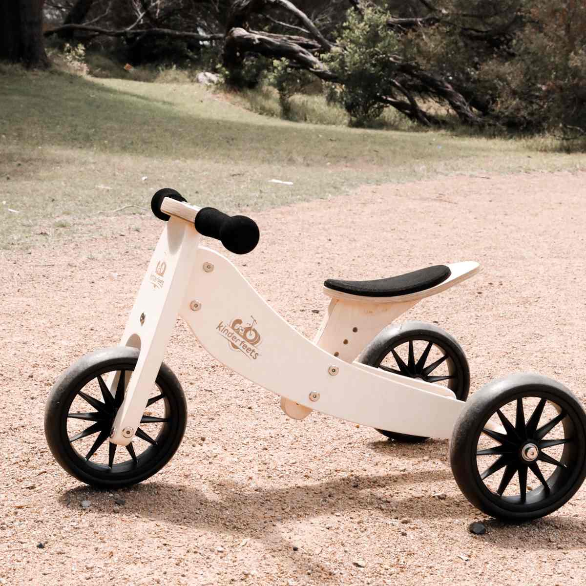The award-winning Kinderfeets 2-in-1 balance bike and trike in a larger size. It's the same quality trike crafted from painted and lacquered birch wood; just bigger.