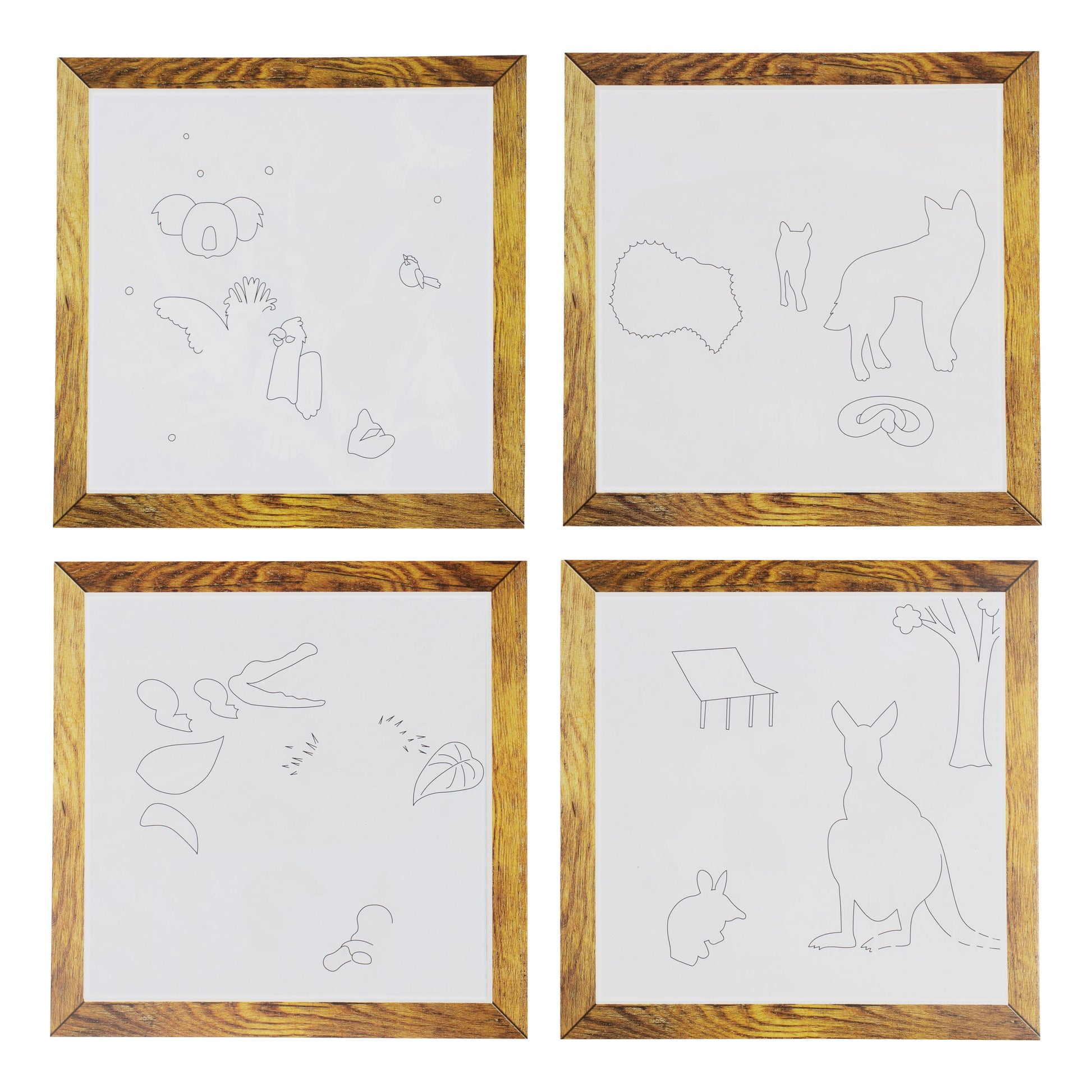 Ideal for portable play (no messy paintbrushes, no water glasses to knock over) this set contains four illustrations of typical Aussie bush scenes for kids to discover. The reverse side of each illustration board includes a list of fun things to find and count as you paint, providing hours of fun!