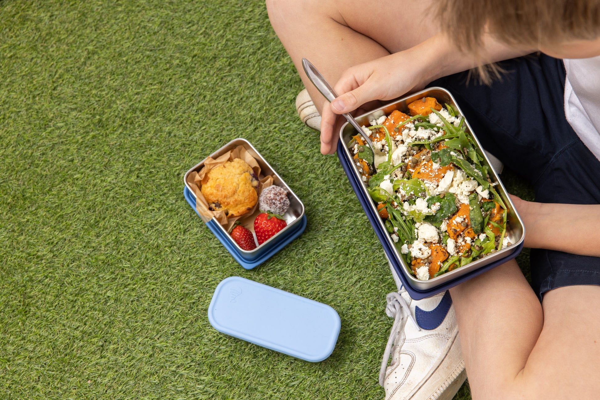 With an 800ml capacity, it’s perfect for salads, grain bowls, or hearty lunch portions that need room to breathe. Roasted veggie couscous, chicken Caesar, fried rice, or any salad your child (or you) loves – this box handles it all, keeping your food fresh, tidy, and plastic-free.