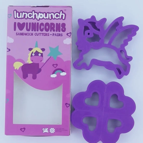 Make mealtime magic with our Lunch Punch UNICORN sandwich cutter set! Listen for the little squeals of delight as you create a majestic full-sized unicorn sandwich or versatile heart shaped bite size pieces. A unicorn lover’s dream lunch is here!
