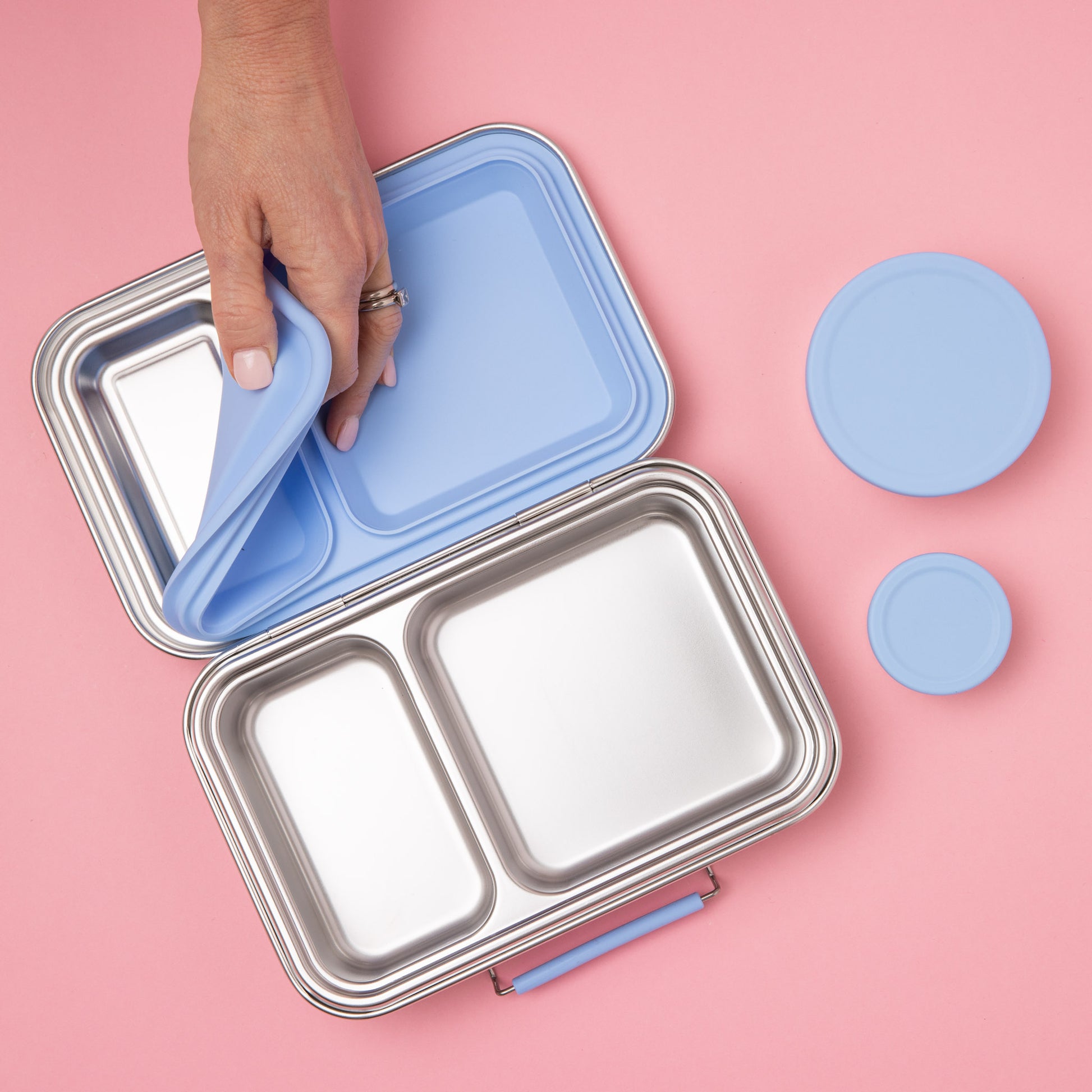 - 1 x 2-compartment stainless steel lunchbox