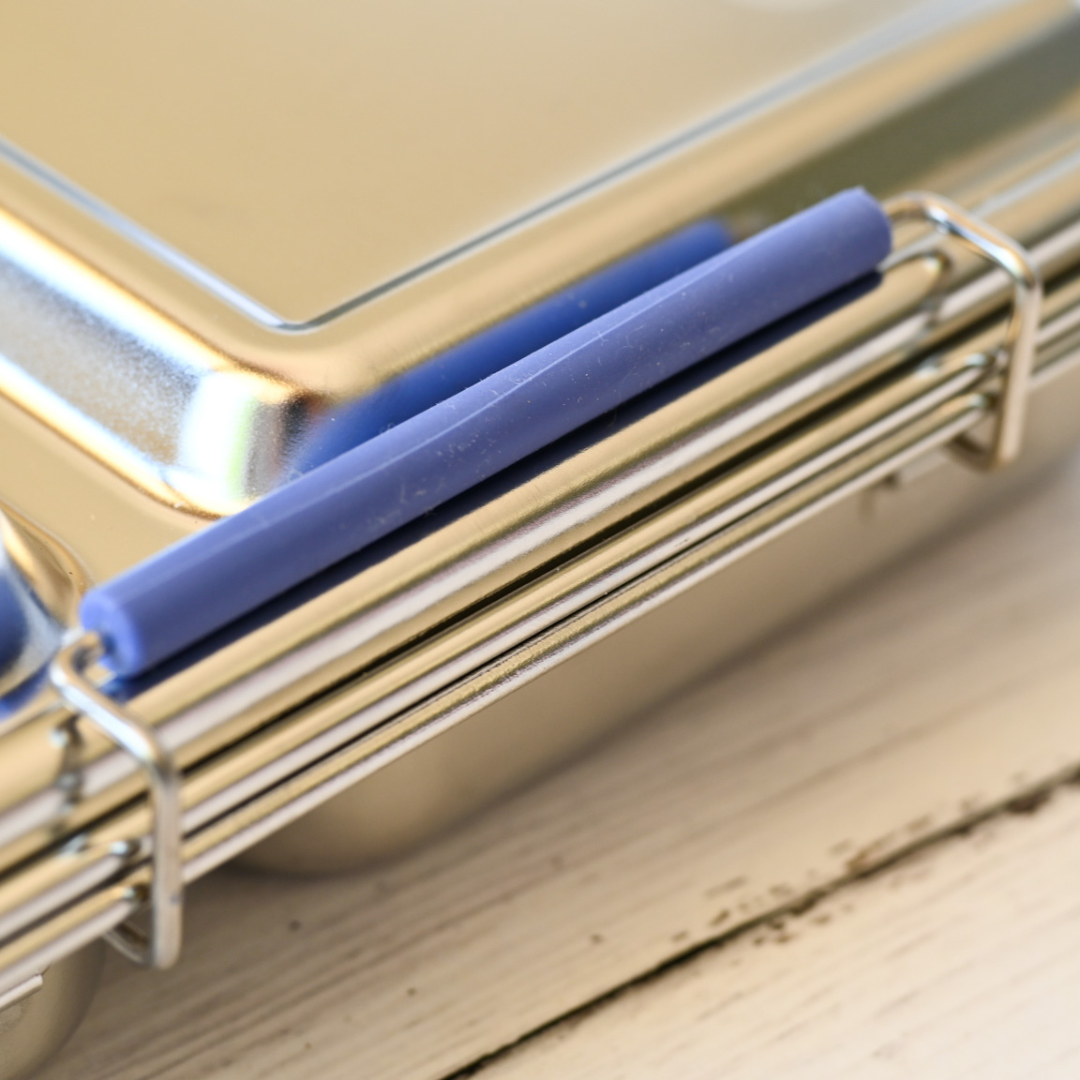 This stainless steel lunch box is thoughtfully designed with two generous compartments plus a snack pot and dip pot, making it ideal for sandwiches or wraps in the main section, and fruit, crackers or snacks in the second. Its removable silicone seal on the lid ensures reliable leak-resistance — so dips, yoghurt or hummus stay put and don’t soak into crackers or sandwiches.